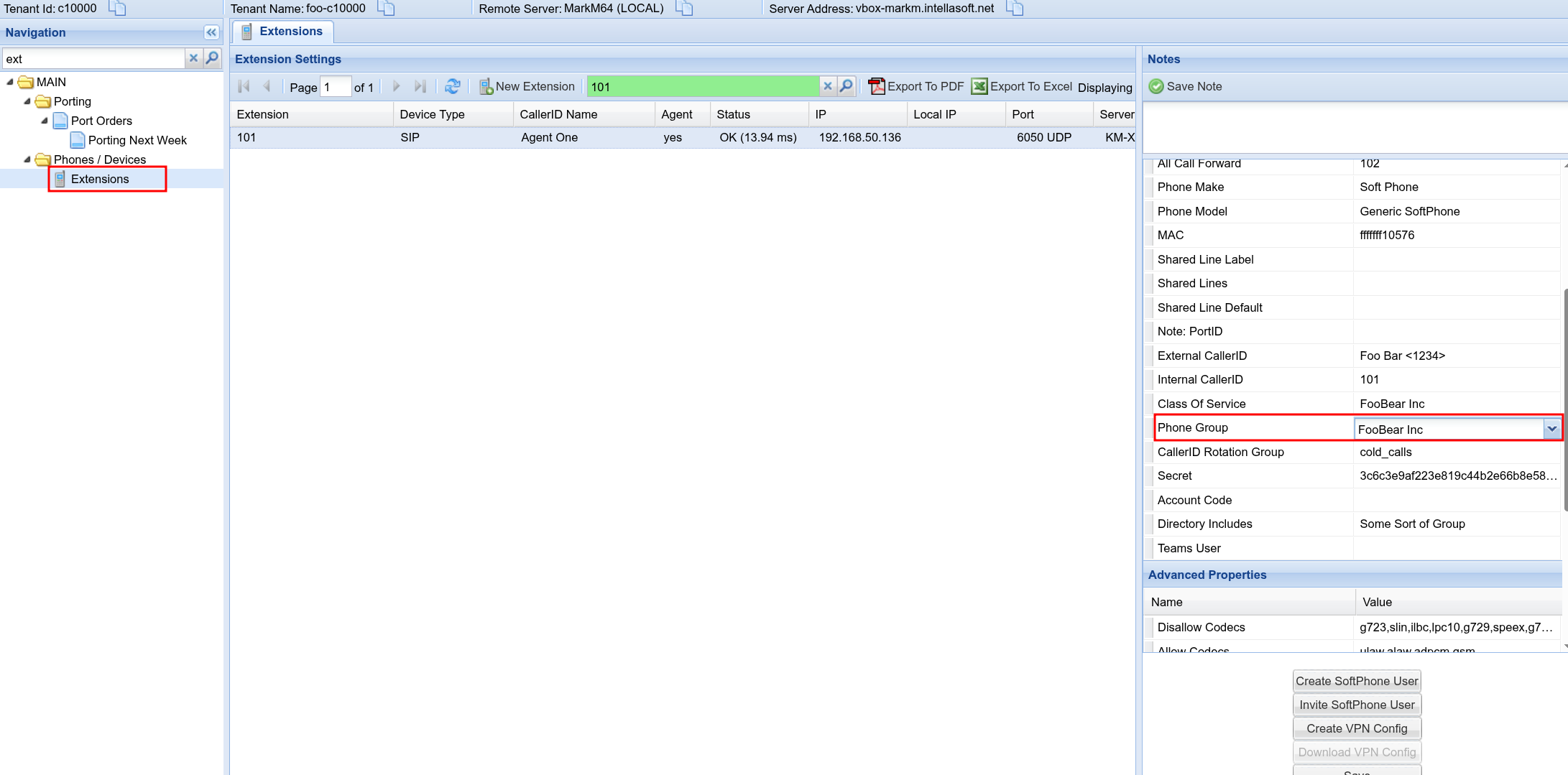 - Locate the PhoneGroup for the Extension