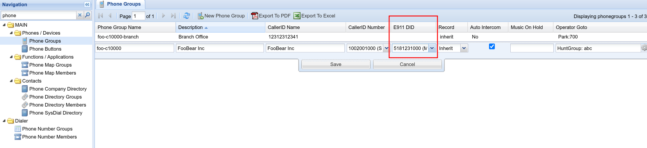 Step 2 - Associate the E911 DID to the PhoneGroup