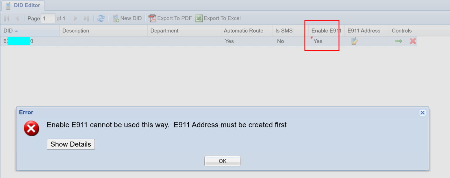 It's important to keep your address current/correct using the 'DID Editor' and selecting 'E911 Address'. If the facility you are managing has moved, or a remote user has a new work location, ensure to keep the address details updated, otherwise this will seriously delay receiving emergency services to your location because the dispatcher will have to transfer the call to the correct regional office.