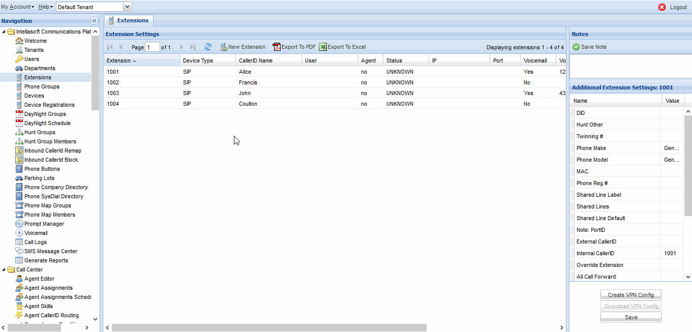 | Agent | Shows whether this extension is assigned to a registered Call Center Agent. | Read-only. This is set on the Agent Allocation screen and may not be available on all systems. |