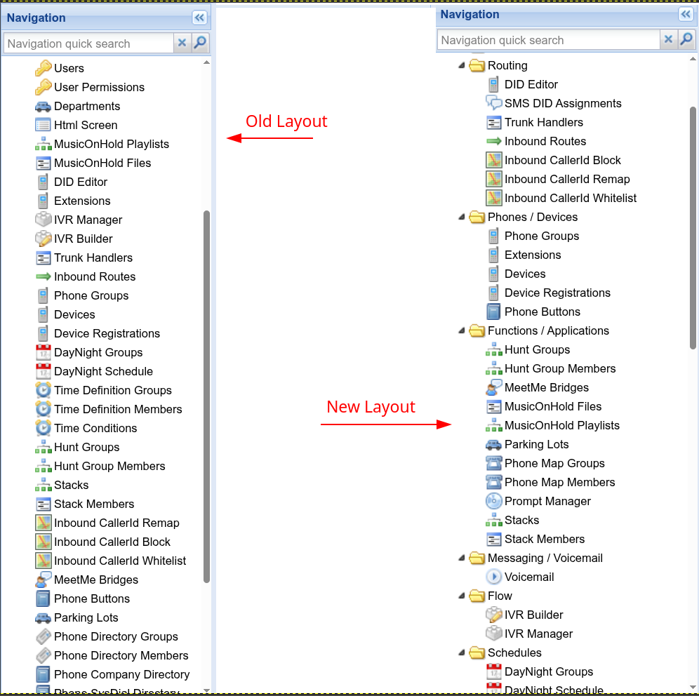 - Now, various configuration screens are grouped by category in order to more easily locate what's needed.